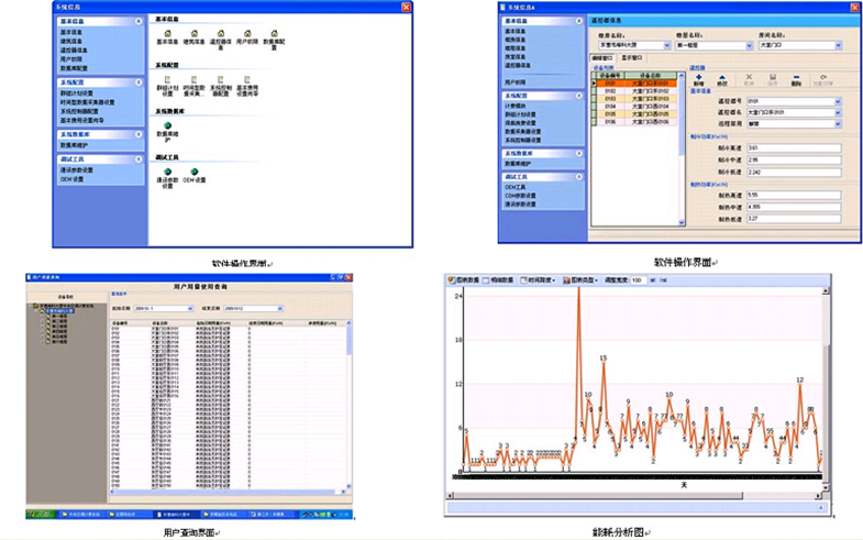可根據(jù)用戶的設置,開關相應設備,自動轉入節(jié)能運行模式,根據(jù)用戶的要求對整個采暖季的運行數(shù)據(jù)進行采集分析,生成能耗分析圖。