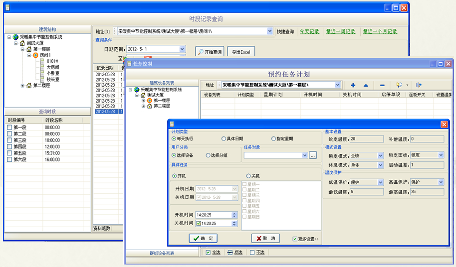 軟件系統(tǒng)依據(jù)用戶的各種預定義功能以及檢測到溫控設備的運行狀態(tài)進行邏輯比較,自動實現(xiàn)溫度、啟停等各種節(jié)能控制。